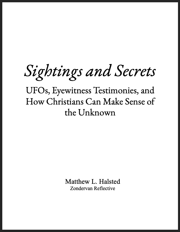 The book is entitled Sightings and Secrets: UFOs, Eyewitness Testimonies, and How Christians Can Make Sense of the Unknown. The writing/research process has been quite the adventure—not least, of course, because of the enigmatic nature of the topic itself and the rather fascinating public narrative that continues to unfold (the UFO subject is not going away any time soon).